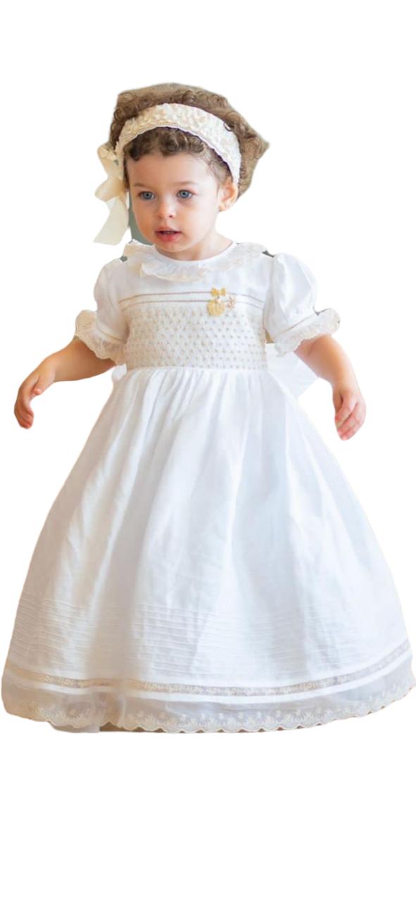 Hermoso vestido de organdi suizo , boradado 100% a mano.